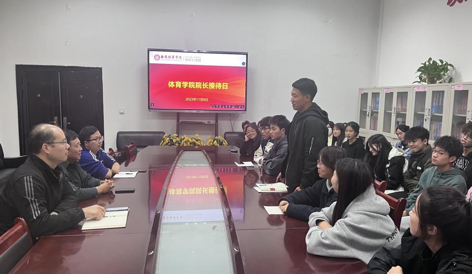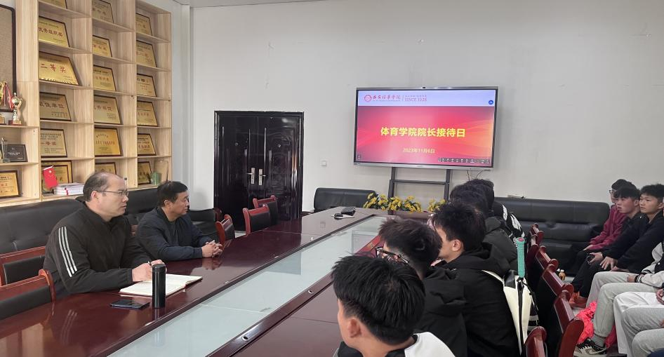 2023年11月6日、8日下午,西安培华学院体育学院院长书记接待日在体育学院会议室举行。西安培华学院体育学院院长王志强教授,西安培华学院体育学院行政副院长、党支部书记马德厚副教授,体育学院团委书记陈新华老师,体育学院辅导员杨苒老师,体育学院2023级体育新生学生代表共计77人参加。活动由体育学院行政副院长、党支部书记马德厚副教授主持。