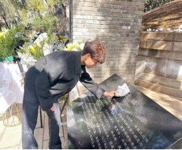 同学们清理墓碑灰尘