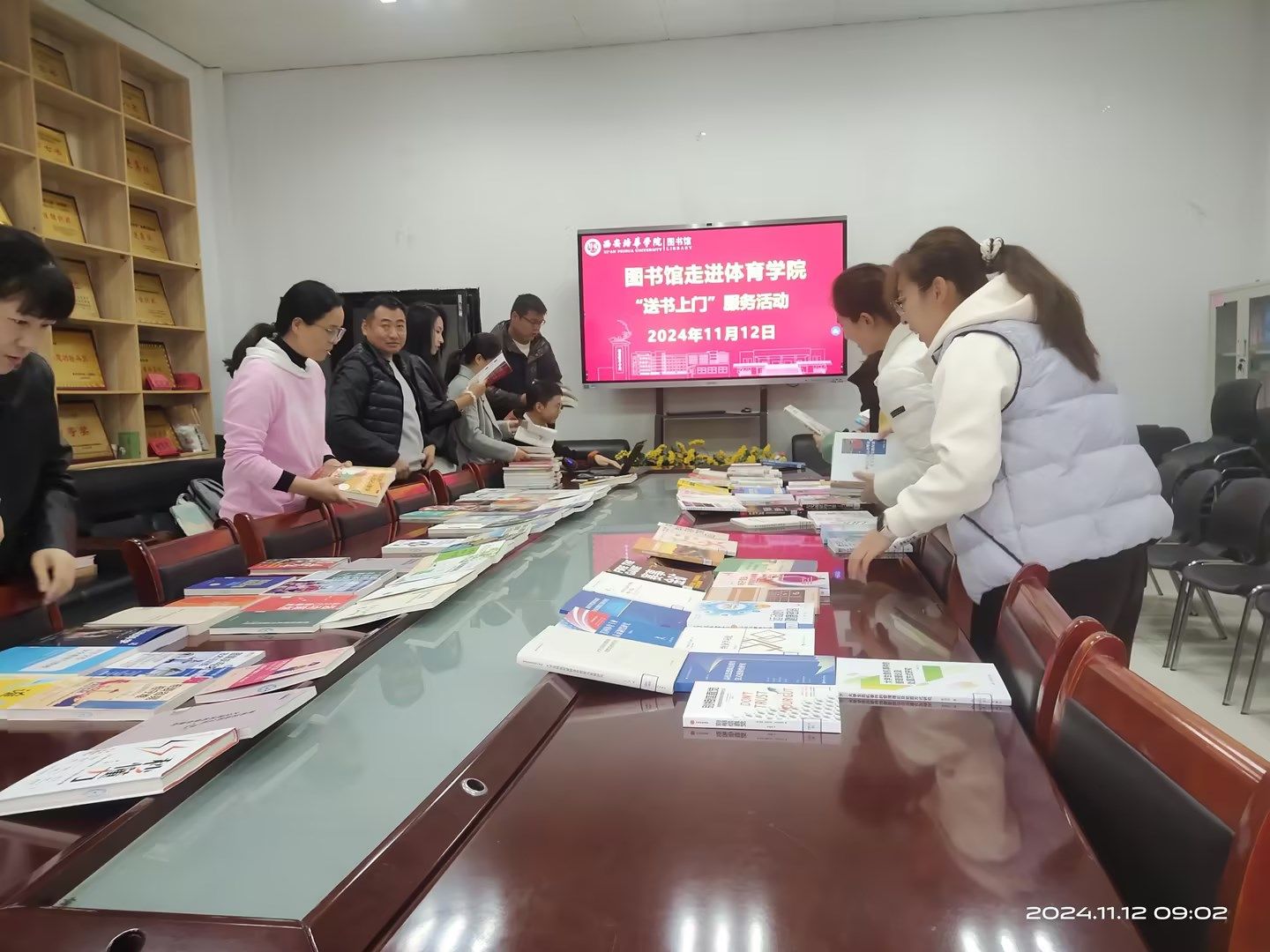 2024年11月12日,一场充满温暖与关怀的送书上门服务活动在体育学院成功举办。体育学院与图书馆携手合作,为体育学院的老师们带来了一场知识的盛宴。