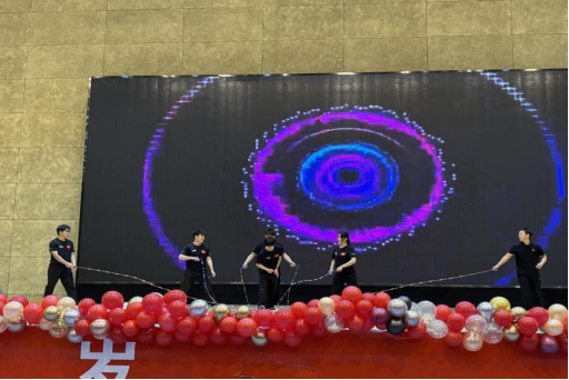 陈新华老师带领的花样跳绳团队带来的表演更是让人叹为观止。队员们身姿矫健,跳绳在他们手中如灵动的精灵般飞舞。他们默契配合,单人花样跳绳时,跳绳者身轻如燕,各种高难度动作如双摇跳、交叉跳、三摇跳等一气呵成;多人跳绳时,团队成员们如同心有灵犀一般,快速穿梭其中,复杂的图案组合和高难度动作衔接流畅自然,展现出扎实的专业功底和顽强的团队协作精神。观众们目不暇接,惊叹声不绝于耳,现场气氛热烈。