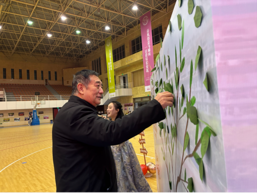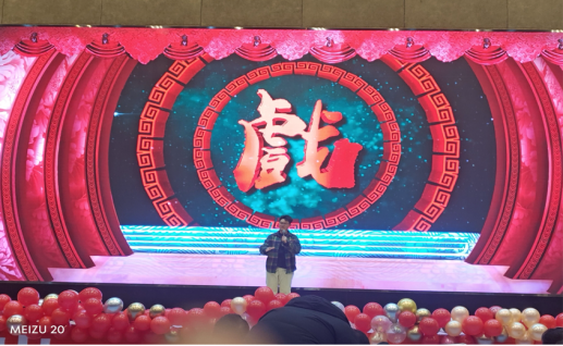 徐国富主席的篮球歌曲演唱激情澎湃。他用富有磁性的嗓音,唱出了对篮球运动的热爱与执着。歌声中仿佛能看到篮球健儿们在赛场上飞奔、跳跃、投篮的矫健身姿,每一个音符都充满了力量,点燃了现场观众的热情,再次将晚会气氛推向高潮。同时,徐国富主席还对晚会进行了全面而深刻的总结,他高度赞扬了全体演职人员的精彩表现,对本次晚会的成功举办表示祝贺,并对学院未来的发展表达了美好的祝愿。
