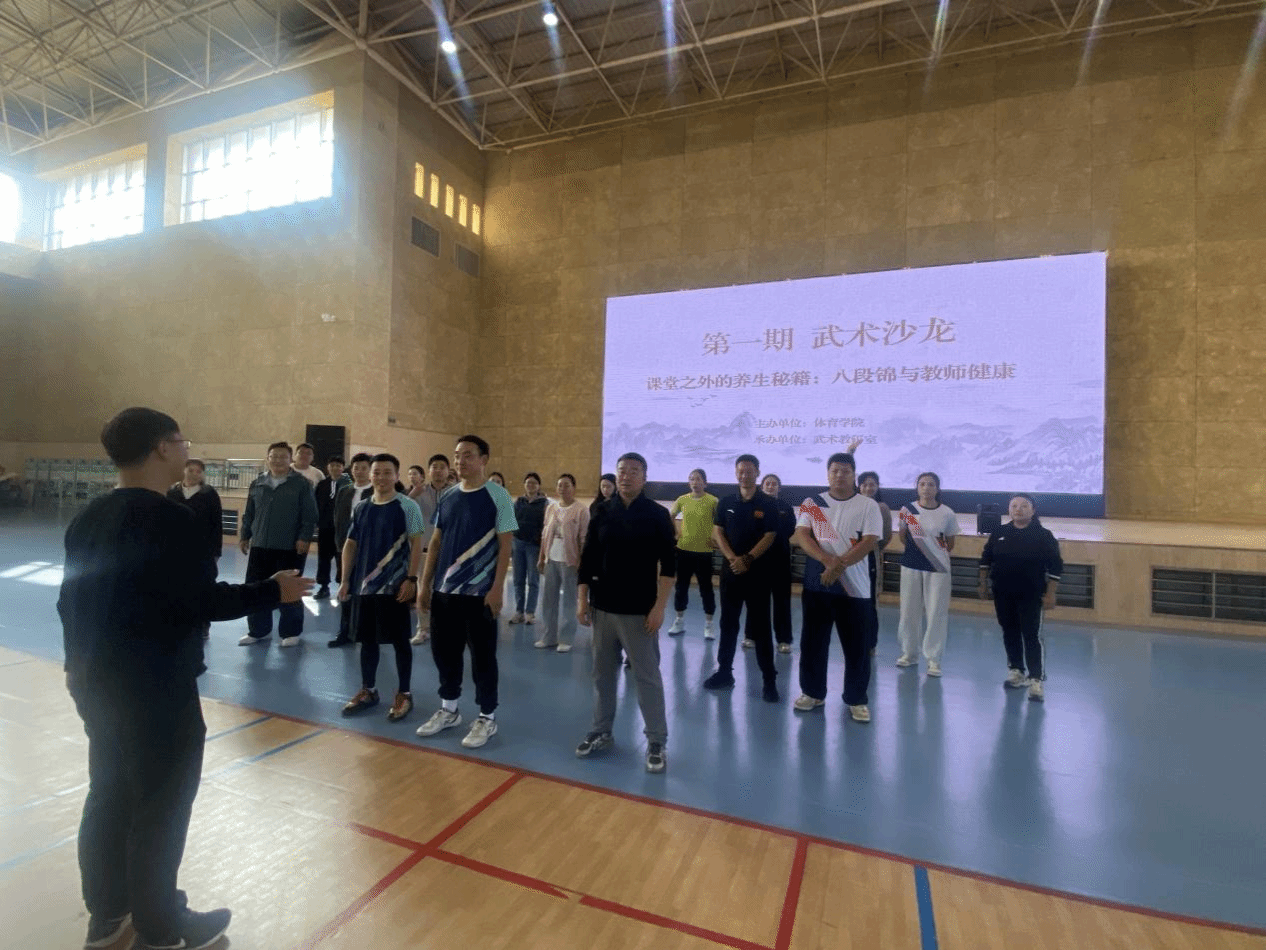 活动伊始,主持人结合教师群体常见的颈椎、腰椎、疲劳等健康问题,阐述本次沙龙的背景与意义,引出八段锦作为传统养生功法在改善教职工健康方面的独特优势,为活动奠定实用且贴近需求的基调。