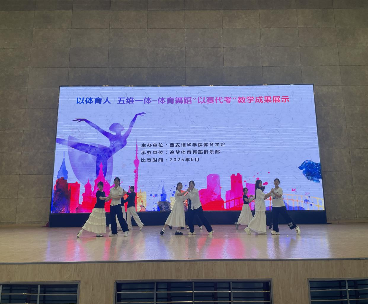 在“五育并举”教育方针的引领下,西安培华学院体育学院以“以体育人”为核心理念,创新推行“教、学、练、赛、考”五维一体教学模式,于6月底考试周在五棵松体育馆举办2025年体育舞蹈教学成果展示。本次活动通过“以赛代考”的实践形式,全面展现体育舞蹈课程在技能提升、思政融合、文化传承中的多维育人成效。