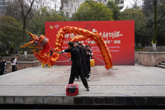 压轴的舞龙舞狮表演则以传统非遗技艺结合现代舞美设计,不仅展示了中国传统文化的魅力,还通过新颖的表现形式,让观众感受到了传统文化的时代感和青春气息。节目既展现青年学子的艺术创造力,也传递了团结协作、勇于创新的新时代雷锋精神。