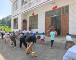 在保证人员、器材、场地、安全的情况下,实践队伍于下午2点30分正式开展特色体育教育活动。分别进行了“阳光健美操”、“敬武跆拳道”和“激情篮球”的实践教学,在教学过程中渗透“感恩教育”、“爱国教育”,并将“体育教育与课程思政教育相融合,通过在课堂中讲解跆拳道礼仪礼节、告诉孩子们学习体育运动需要坚持不懈的精神和顽强的意志品格,从而使孩子们体会到体育教育对于身心发展的重要性,并受到家长及村镇干部的高度认可。