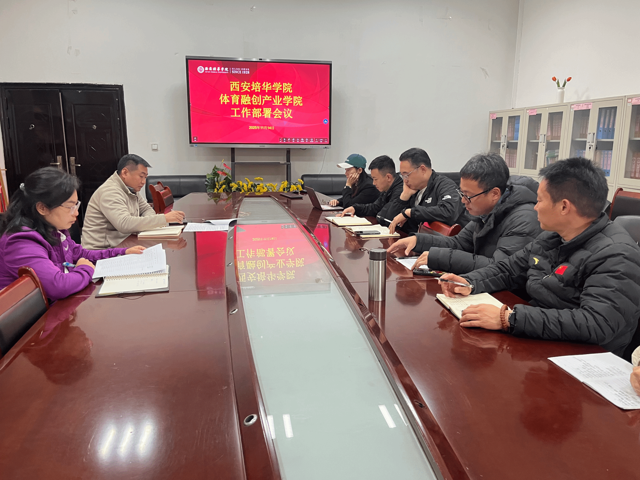 2025年11月14日,西安培华学院体育学院围绕体育融创产业学院建设工作召开工作部署会议,明确学院发展定位、梳理合作成果、破解现存难题,并传达落实校领导工作指导意见,推动产教融合、校企协同育人模式向纵深发展。
