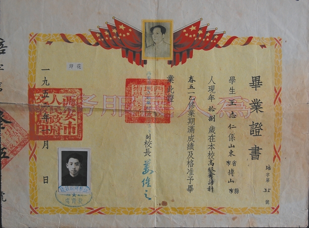 1952年1月,西安市私立培华财经技术学校毕业证书