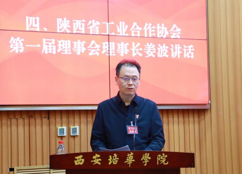 与会领导为新当选的理事长、监事长、副理事长以及秘书长颁发聘书。田玉萍、单耀峰、张欣胜、姜波等同志共同为陕西省工业合作协会揭牌。西安纺织控股有限责任公司纪委书记杨柳宣读了陕西省人大常委会原副主任、省政府原副省长李金柱同志向大会发来的贺信。