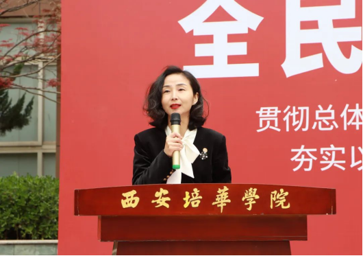 西安培华学院党委副书记、副校长姚文静致辞并宣布西安培华学院“全民国家安全教育”系列活动开幕。她讲到,开展“全民国家安全教育”活动是培养和增强全体公民自觉投身国家安全的责任感、使命感,夯实和筑牢国家安全的群众基础,形成和汇聚维护国家安全强大合力的重要举措。每一位师生都要始终树立国家利益高于一切的观念,在任何时候、任何情况下,把国家安全放在高于一切的地位。