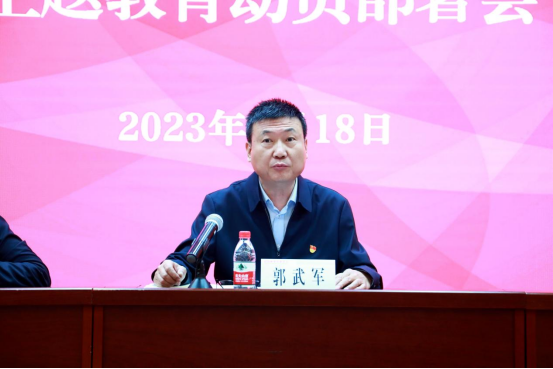 郭武军同志指出,一是要切实提高思想认识。习近平总书记重要讲话要深学细研,反复领悟。要用习近平总书记的讲话统一思想、统一意志、统一行动。切实增强抓好主题教育的政治自觉、思想自觉、行动自觉。深刻领悟“两个确立”的决定性意义。增强“四个意识”,坚定“四个自信”,做到“两个维护”,更加自觉在思想上、政治上、行动上同以习近平同志为核心的党中央保持高度一致。二要准确把握任务要求。深刻理解主题教育的主要要求与根本任务,正确把握主题教育是什么、干什么、怎么干的内在联系和实践逻辑,切实增强工作的针对性和实践性。这次主题教育的根本任务是坚持学思用贯通,知责行统一,把习近平新时代中国特色社会主义思想转化为坚定理想、锤炼党性、指导实践和推动工作的强大力量。引导党员干部学好、用好习近平新时代中国特色社会主义思想。三要科学树立工作导向。科学有序地推动主题教育走深走实。突出问题导向,着力解决理论学习、政治素质、能力本领、担当作为、工作作风、廉洁自律等六个方面的突出问题表现。坚持围绕学校中心大局,把开展主题教育同贯彻落实党的二十大精神和党中央的决策部署结合起来。四要贯通落实重点措施。理论学习要原汁原味深入学,联系实际重点学,领导干部带头学。调查研究要深入重点项目一线、师生群众一线、基层部门一线和党建工作一线,认真排查梳理贯彻执行过程中的堵点、瘀点、痛点、难点。五要坚决扛起政治责任。学校党委要自觉扛起主体责任,切实做到知责于心、担责于身、履责于行,对主题教育高起点谋划、高标准推进、高质量落实,以更强的意识、更实的举措、更优的作风投身到主题教育,把这一重大的政治任务抓实、抓好、抓出成效。