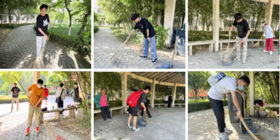 同学们手持扫把等清洁工具,以饱满的热情对草丛、花坛、紫藤花架,图书馆门口花丛等场所进行了打扫。同学们分工合作,对打扫区域合理划分,充分发挥一不怕苦、二不怕累的精神,展现了当代大学生良好的精神面貌。最后大家将拔起的杂草和捡起的垃圾集中到一起,装在垃圾袋里面进行集中处理。