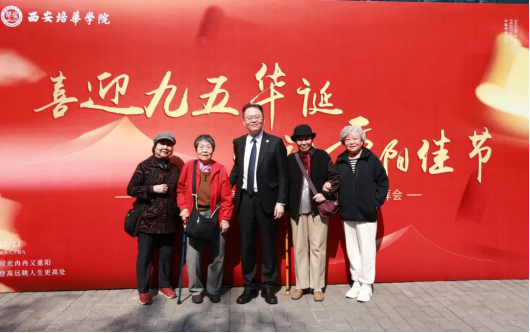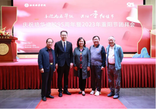 为庆祝培华建校95周年,发扬尊老爱老敬老的传统,学校隆重举办建校95周年暨重阳节团拜会,邀请在培华工作的60岁以上的教职员工、关心支持培华事业发展的各级领导、离退休老同志、历届校友、西安培华学院全体校领导出席大会,喜迎校庆、畅叙友情,传递爱心、共话发展!大会由学校党委书记罗新远教授主持。