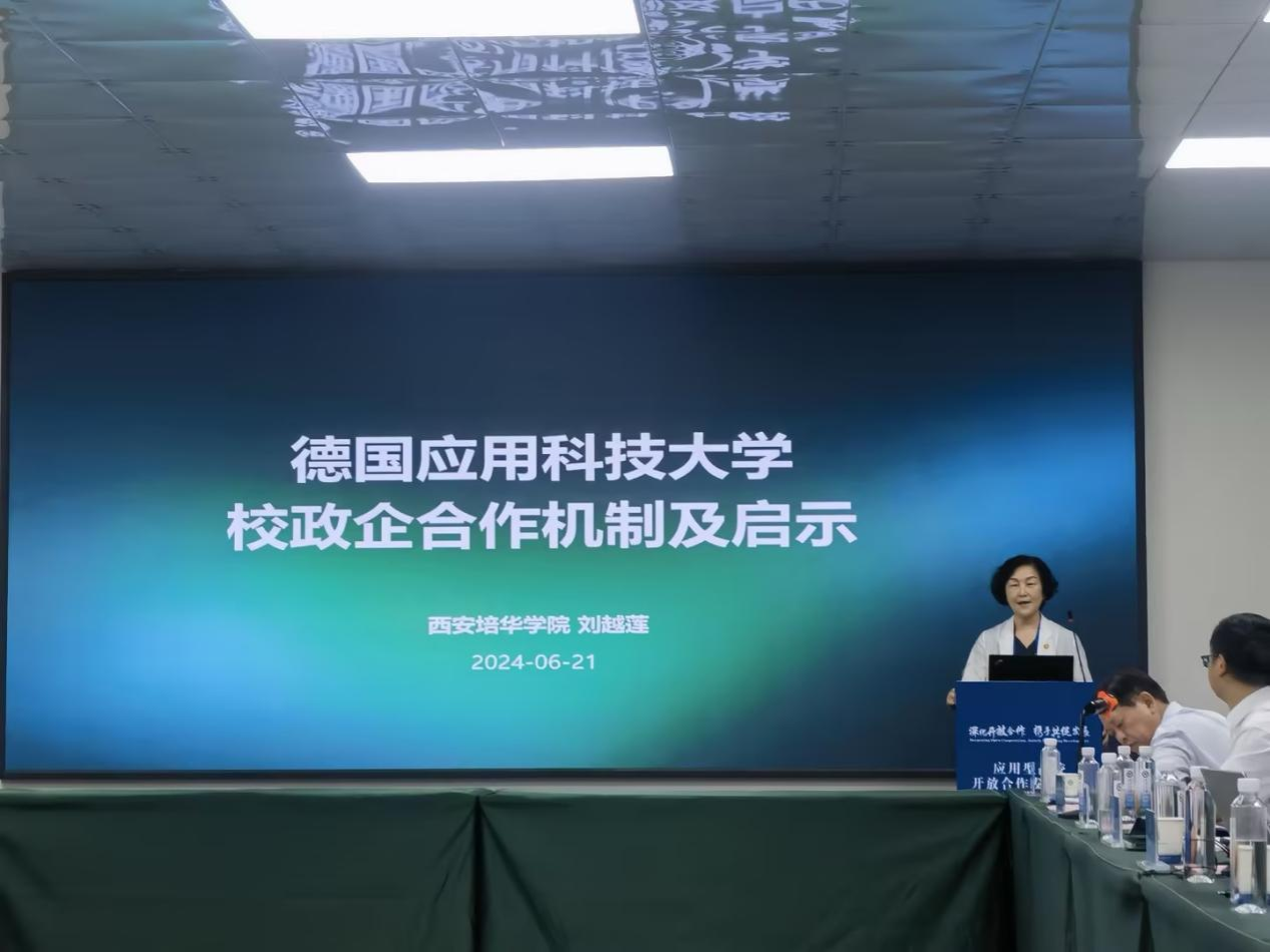 在“深化校政企合作,共育数字经济人才”分论坛中,刘越莲副校长作“德国应用技术型大学校政企合作机制及其启示”主题报告。学校一行与来自不同领域的专家学者进行了深入交流,共同探讨了产教融合相关问题,以及如何通过教育创新来推动社会经济发展。