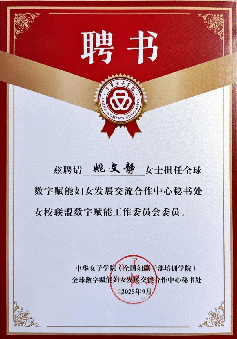此前,姚文静副校长已获聘由全国妇联指导、中华女子学院牵头的“全球数字赋能妇女发展交流合作中心秘书处女校联盟数字赋能工作委员会”委员。这既是对培华女性教育工作的认可,也为此次省级共建注入全球视野与高维定位。