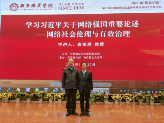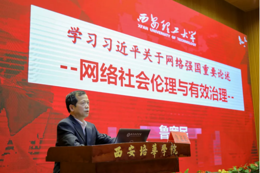 西安理工大学鲁宽民教授为学校师生做了题为《学习习近平关于网络强国重要论述——网络社会伦理与有效治理》的专题报告。