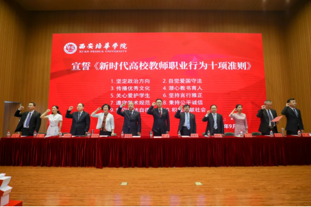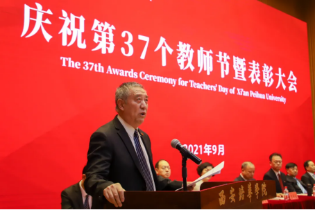 9月9日下午,西安培华学院在维之图书馆报告厅举行2021年庆祝教师节暨表彰大会。全体校级领导,各院(部)、中心负责人、教师代表、辅导员代表近300人参加了会议。
