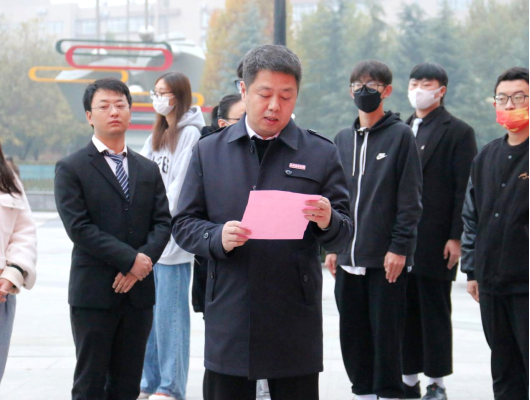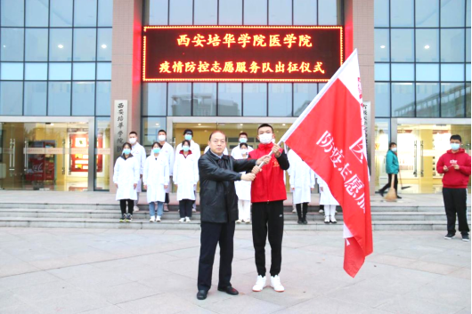 副校长兼医学院院长于国亮为西安培华学院医学院防疫志愿者服务队授旗