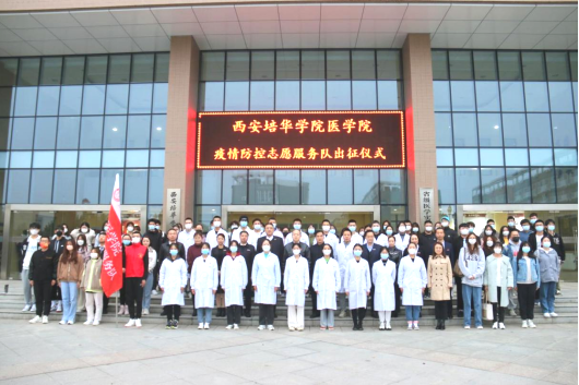 为进一步做好疫情防控工作,快速有效阻断疫情扩散,西安培华学院积极响应西安市长安区疾控中心号召,倡议学校医学院青年学子发扬伟大抗疫精神,积极投身疫情防控工作,为打赢疫情防控遭遇战贡献青春力量。经报名筛选,学校最终选拔出疫情防控志愿者20名,并于11月1日在至善楼广场举行了疫情防控志愿服务队出征仪式。