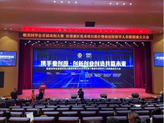 11月18日,由省委统战部指导、省欧美同学会主办的欧美同学会首届双创大赛西部赛区优秀项目推介暨秦创原留学人员联盟成立大会在西咸新区举行。大会由陕西省欧美同学会副会长、陕西省政协常委、西安培华学院理事长姜波主持。