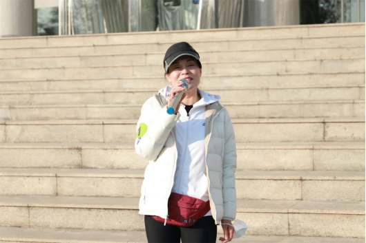 参赛选手们换上运动鞋,精神抖擞,在维之图书馆前列队集结、活动热身,做好参加健步走活动的各项准备工作。学校健走俱乐部指导教练唐静和体育学院老师,共同带领大家进行热身活动。
