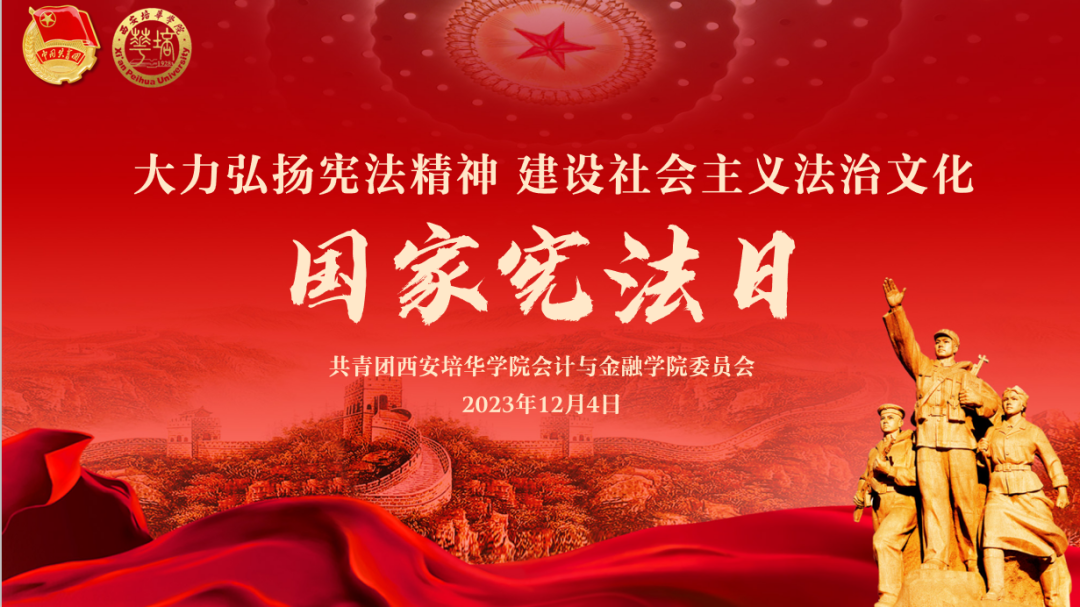 宪法是国家的根本大法,是治国安邦的总章程,是党和人民意志的集中体现,具有最高的法律效力。现行宪法是对1954年制定的新中国第一部宪法的继承和发展。1982年12月4日,第五届全国人民代表大会第五次会议通过了现行的《中华人民共和国宪法》设立国家宪法日,不仅是增加一个纪念日,更要使这一天成为全民的宪法“教育日、普及日、深化日”形成举国上下尊重宪法、宪法至上、用宪法维护人民权益的社会氛围。为弘扬宪法精神,建设社会主义法治文化,共青团西安培华学院会计与金融学院委员会特举办“大力弘扬宪法精神,建设社会主义法治文化”国家宪法日主题宣讲会。