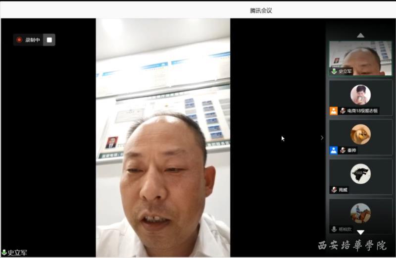 2008届毕业生庞连清,银狐电子科技有限公司创始人,通过自己的创业经历告诉参加视频会议的老师和同学,要时刻保持学习的态度、创新的思想,提醒在校的同学要学习好专业课,掌握一门技能才能在将来的工作中立于不败之地。