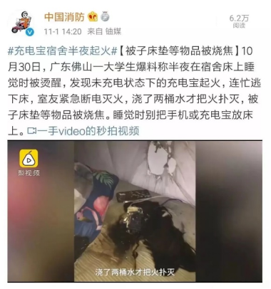 睡觉时禁止将正在充电的手机或者充电宝放在床上,以防发生火灾事项。