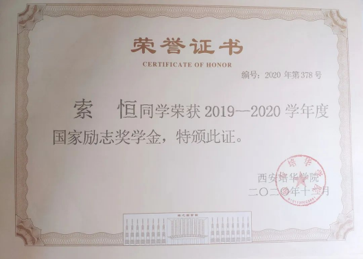 14.2019年获国家励志奖学金