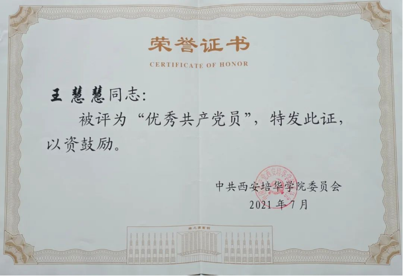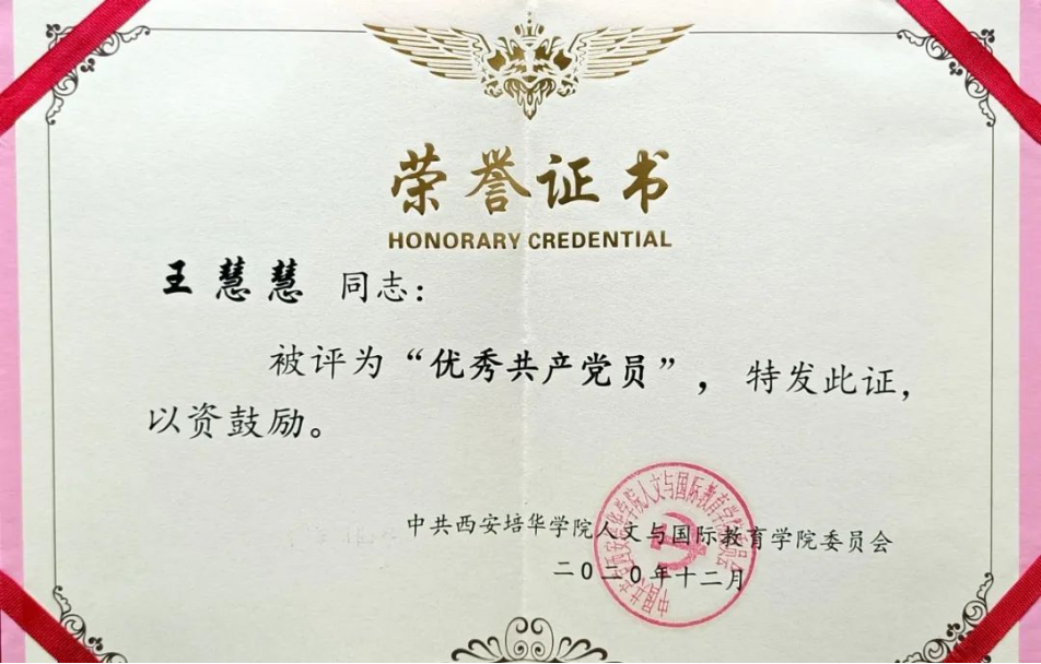 12.2020年获西安培华学院人文与国际教育学院“优秀共产党员”