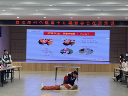 在培训过程中,授课老师重点从心搏骤停的识别方法、徒手心肺复苏(CPR)的操作流程、海姆立克急救法的规范操作以及自动体外除颤仪(AED)的正确使用、创伤现场急救技术等重要内容进行详细讲解。培训讲师以通俗易懂的语言,结合生动鲜活的实际案例,把理论知识和实际操作相结合,为广大教师详细讲解了相关救助知识和注意事项,并利用模拟人、包扎盒、AED等各类教具进行现场示范,让抽象的知识变得直观可感。