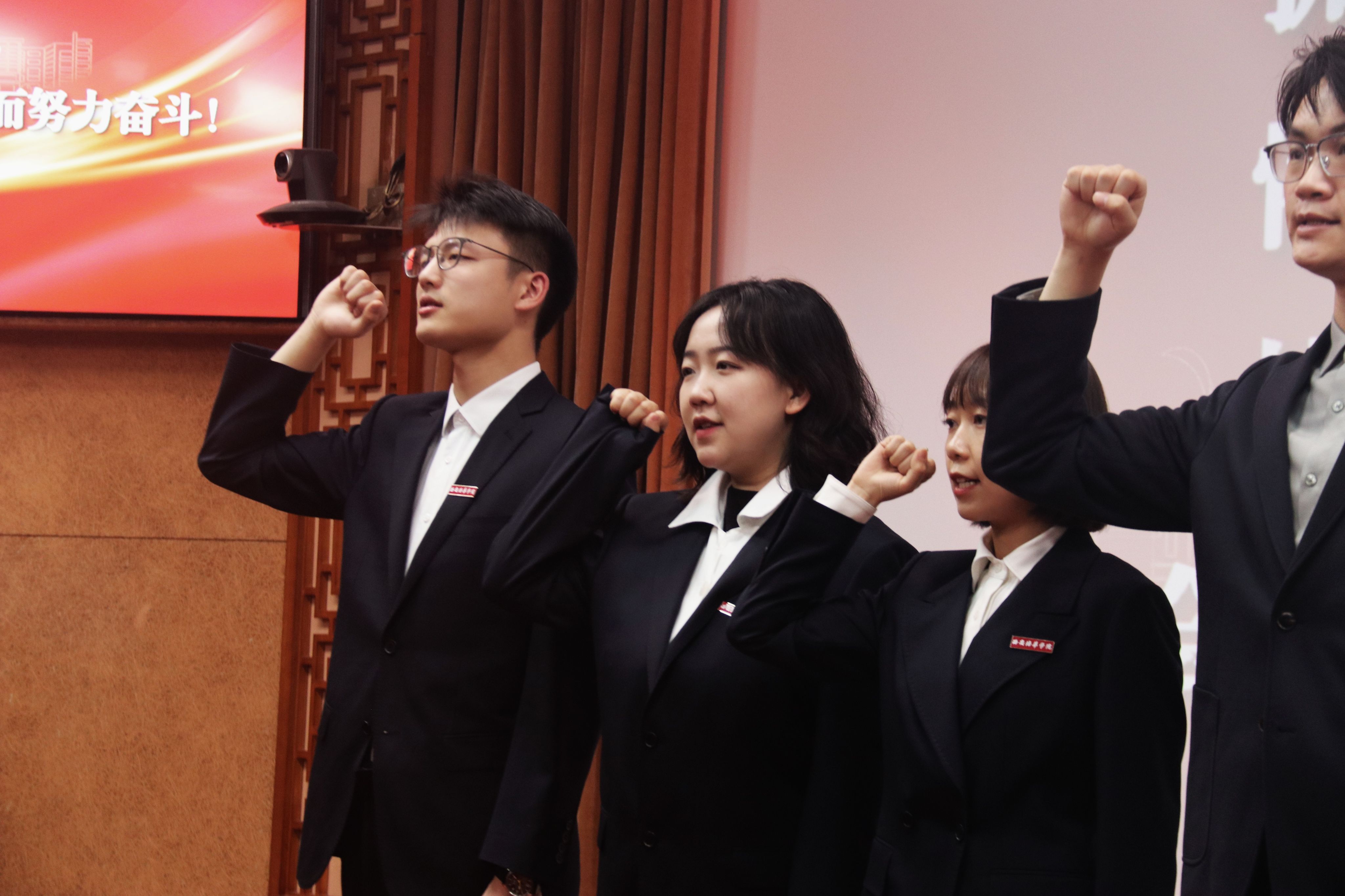 各二级学院书记为新入职辅导员颁发结业证书并赠送工作寄语纪念卡。帮扶导师为新入职辅导员佩戴了校徽并赠送了入职大礼包。同时,新入职的辅导员也为帮扶导师准备了一份心意,向导师赠送并行拜师礼。随后,医学院辅导员陈博威带领全体辅导员进行庄严宣誓。“我志愿成为一名高校辅导员,拥护党的领导……为培养社会主义合格建设者和可靠接班人而努力奋斗!”一字一句,神圣而豪迈,全体学工人也将牢记誓言,铭记嘱托,勤奋务实,开拓创新,为学校教育事业发展和学生成长成才贡献智慧与力量。