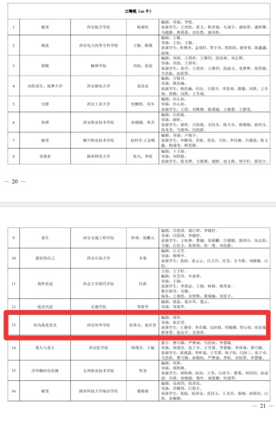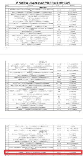 传媒学院党委副书记高嘉炜指导的情景剧《两个我》荣获“陕西高校第四届校园心理情景剧一等奖”,建筑与艺术设计学院党委书记兼行政副院长权勇太、建筑与艺术设计学院辅导员张庆莹指导的情景剧《因为我是党员》荣获“陕西高校第四届校园心理情景剧三等奖”。