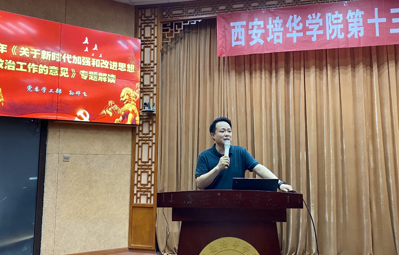 ——中共中央 国务院印发 《关于新时代加强和改进思想政治工作的意见》 专题解读。党委学工部副部长孙晔飞带领辅导员一起对中共中央 国务院印发《关于新时代加强和改进思想政治工作的意见》进行了学习。他讲到,作为一名高校辅导员,必须在思想上、政治上、行动上同党中央保持高度一致,强化党的意识,强化组织意识,增强责任感和使命感;要敢于和善于运用批评和自我批评这个有力武器,开展积极健康的思想斗争,明辨是非、坚持真理、修正错误、统一意志、增进团结。同时,他强调在日常工作中,辅导员要不断加强政治理论学习,关注党和国家的方针政策,加强思想更新和理解,牢固树立正确的人生观、世界观、价值观,正确看待名利,勤奋工作、甘于奉献、努力创新,起好党员的模范带头作用,在实践中锻炼自己的意志力以及工作能力。