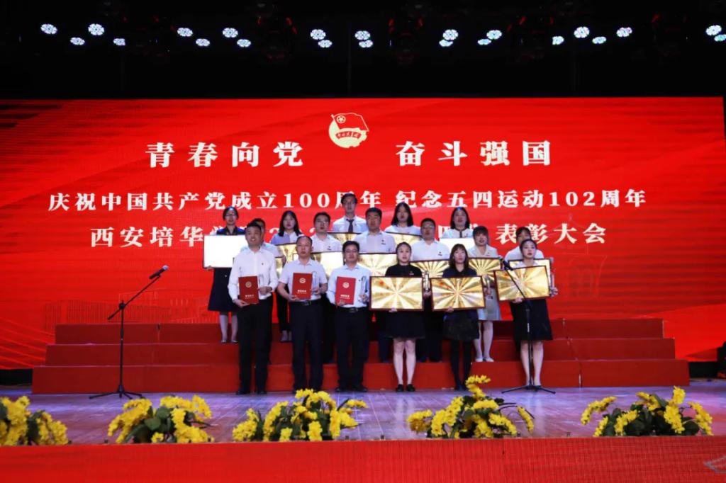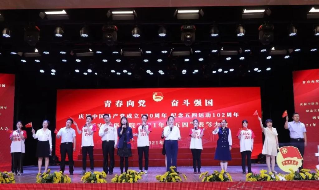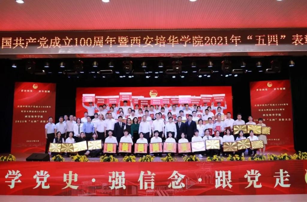 为庆祝中国共产党成立100周年,纪念五四运动102周年,西安培华学院2020-2021学年五四表彰大会暨火炬传递仪式在长安校区隆重举行。
