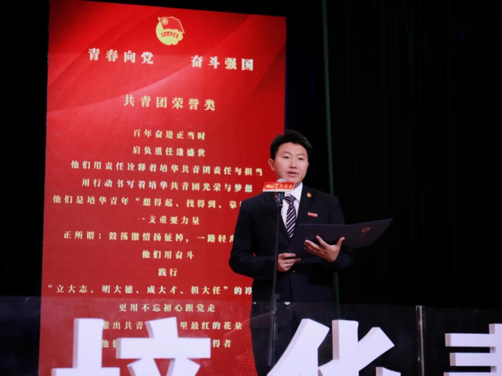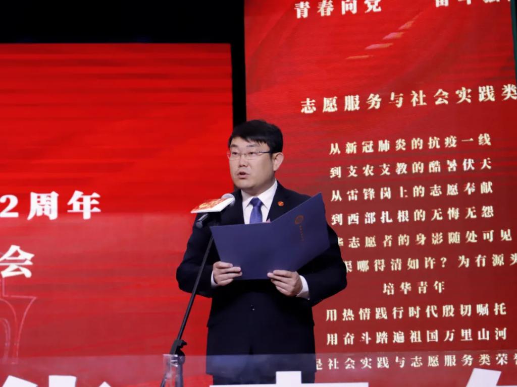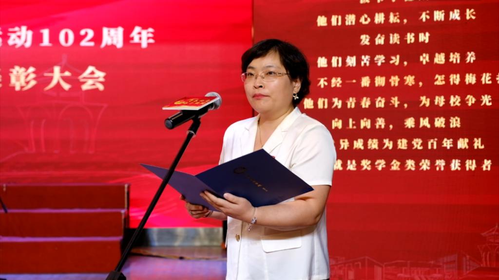 副校长、党委副书记姚文静宣读《关于表彰2020-2021学年优秀共青员优秀共青团干部 优秀共青团员标兵 先进团支部 单项奖先进集体 五四红旗团委 优秀团务工作者和支持共青团工作好书记(院长)的通报》、《西安培华学院关于表彰2020-2021学年先进班集体、三好学生、优秀学生干部和优秀学长的通报》表彰文件。