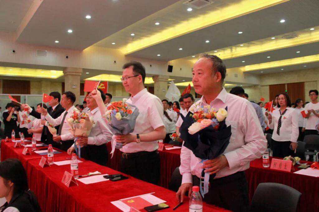 各学院团委书记为新团员佩戴团徽、颁发团员证