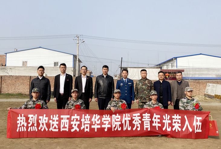 党委学工部部长蔡亮讲到我校在雁塔区武装部的组织领导下,积极开展应征入伍各项宣传工作,积极组织适龄青年投身国防建设中,用实际行动支持国防建设及军队建设,体现了高度的思想政治觉悟和极大的爱国热情。他强调,入伍新兵既代表了雁塔区优秀应征青年,又代表了20000余名培华学子。希望新应征入伍的同学在新的环境中,严格要求自己,遵守部队纪律,勤奋学习,扎实训练,在实践中不断增长才干,做新时代革命军人,肩负起培华青年的责任和担当。