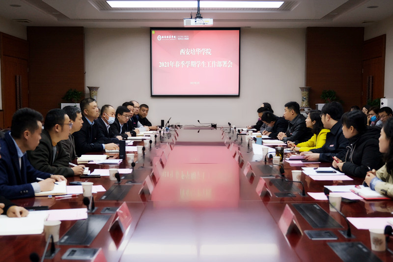 为全面落实学校新学期工作部署,明确年度学生工作重点,提升学生教育、管理、服务水平,3月5日上午,在明德楼第一会议室召开2021年春季学期学生工作部署会,党委副书记、副校长姚文静,招生与就业指导中心主任鲍伟,党委学工部部长蔡亮,党委学工部副部长姚斌,学生潜能发展中心负责人韩赟,各二级学院党委(总支)书记、行政副院长,校团委、学生服务中心主管老师参加了本会工作部署会。
