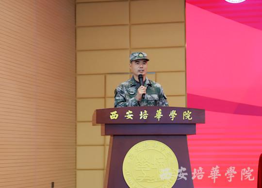 西安培华学院党委学工部部长、学生服务中心主任、团委书记蔡亮代表学校向承训部队的全体官兵表示了热烈的欢迎和衷心的感谢。他讲到,本次军训对于官兵而言,是人生导师的美好经历,师者仁心、师者示范。对于受训新生,是一次军旅生涯的切身体验,军风严整、军纪威严。对于辅导员、学长教官、班级学长,是一次近距离观摩、认真学习的重要机会,务必珍惜,加强沟通。他强调,要按照“军训训练大纲”标准开展训练,明确目标、强化纪律;要统筹做好疫情防控和军训工作,疫情防控、安全第一;要要大力传承红色基因,营造氛围、宣传到位;要做好舆情管控、切实有效;让新生在军训中,磨练意志、增长本领、拓展视野、塑造灵魂,让新生在军训中学到军人气魄,塑造军人品格、传承军人使命,为即将到来的大学生活打好基础、开好局。