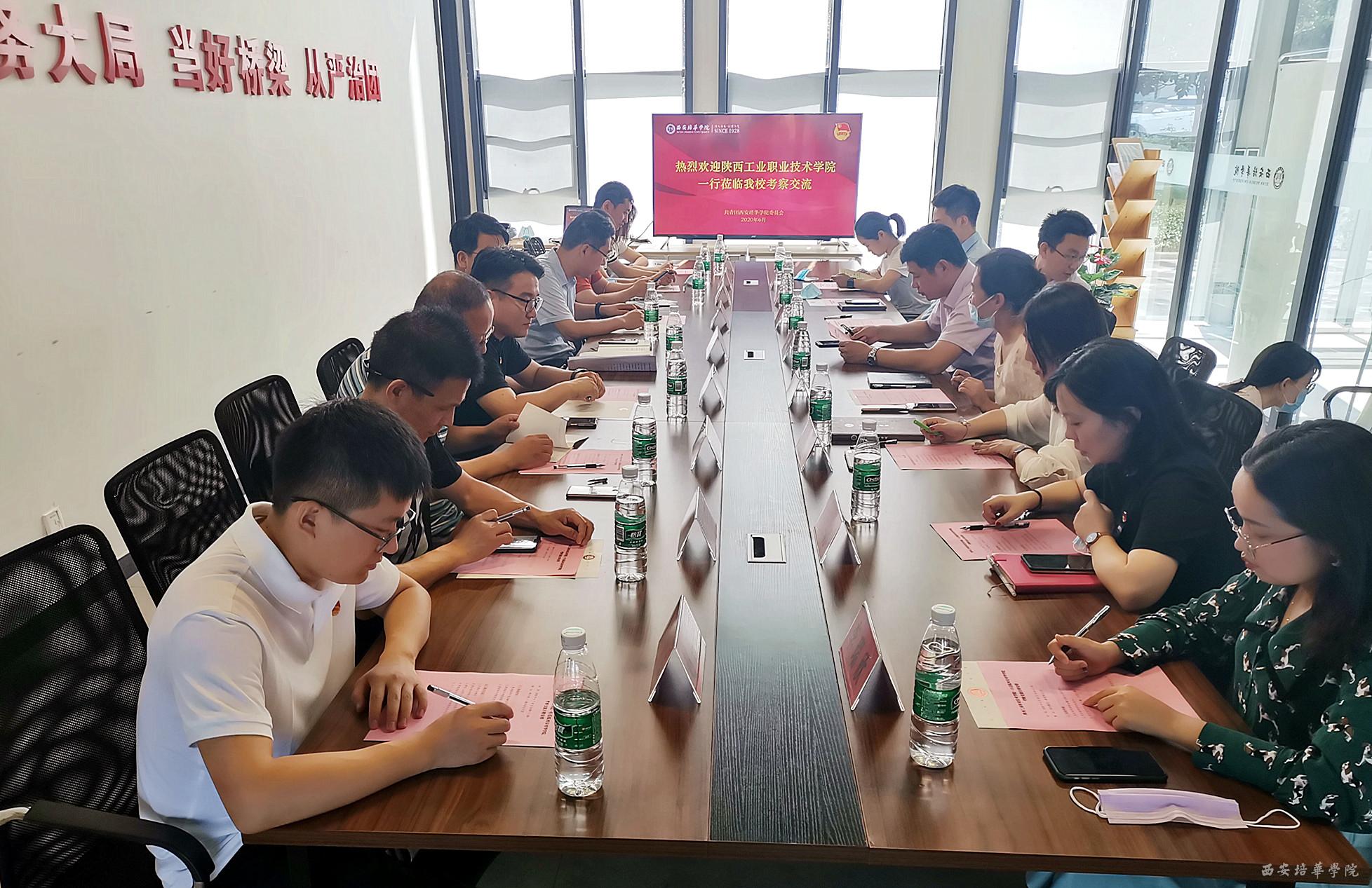 6月30日上午,陕西工业职业技术学院团委书记赵双军,西部创新创业研究院院长胡平等一行十人来培华参观考察,并进行了座谈交流。校团委书记蔡亮,校团委副书记屈先锋,团委工作部部长杨媛,校团委干事以及相关二级学院团委书记及有关部门负责同志接待了来访嘉宾。