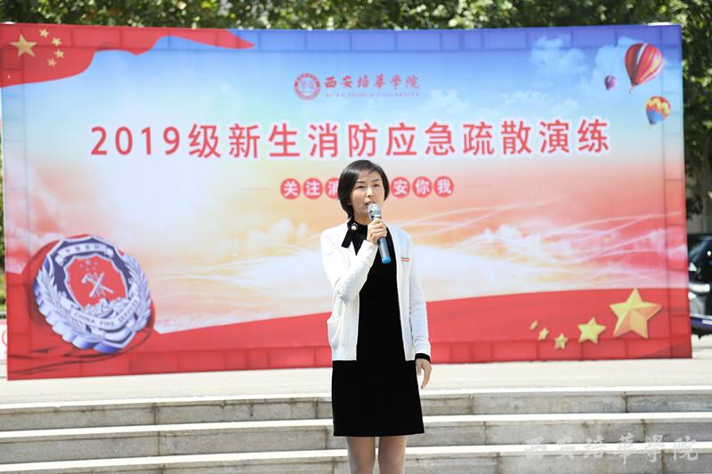 在消防应急疏散、实景模拟火灾现场逃生演练中,我校副校长、党委副书记姚文静副教授作动员讲话,她讲到同学们要积极配合演练,演练过程中一定要注意安全,她强调,希望通过此次消防演练同学们能提高安全防范意识,增强自防自救能力,牢记安全教育,学会应急避险的常识和技巧,为共同营造一个平安、和谐的校园环境增砖添瓦。