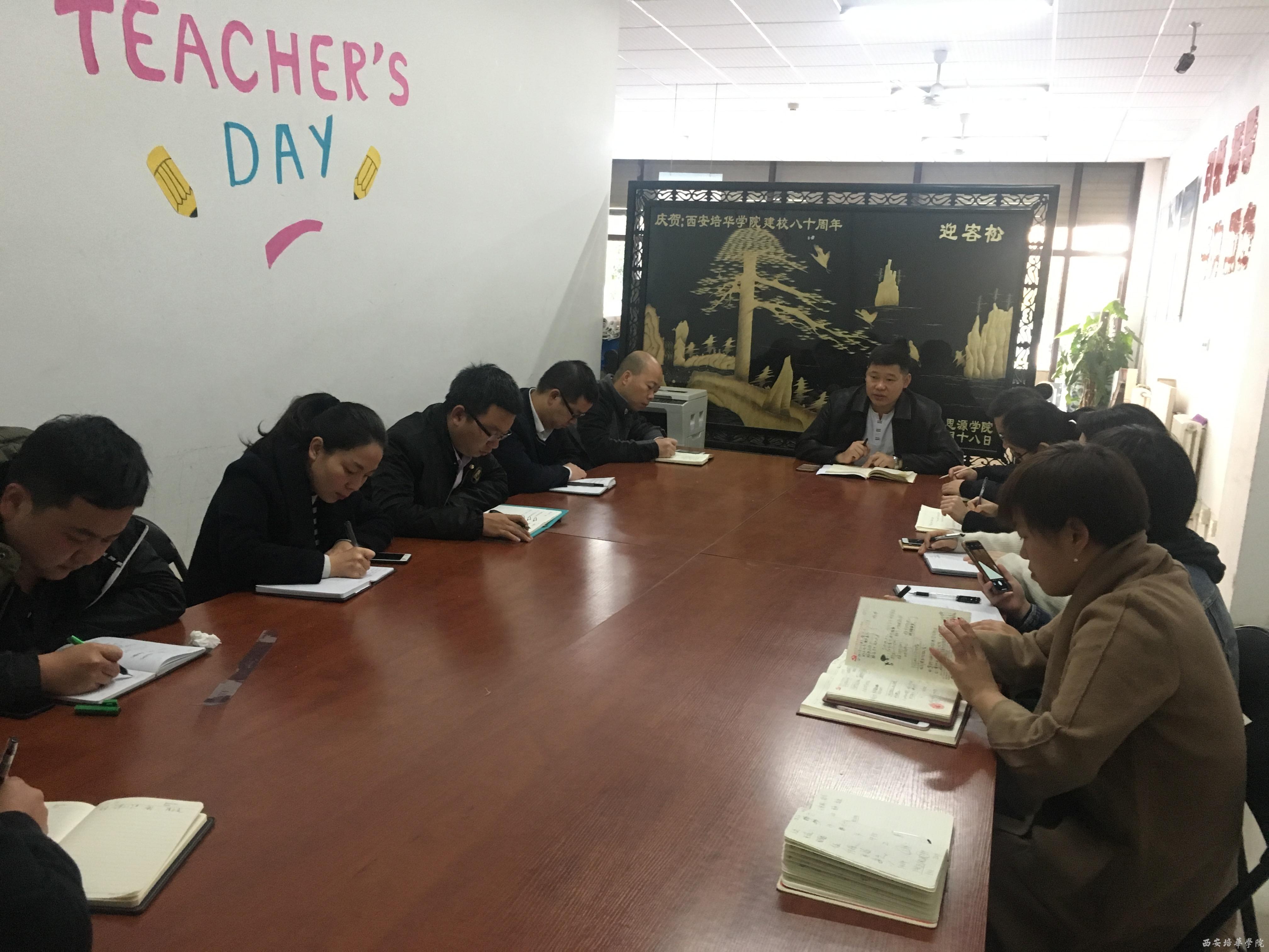 学生服务中心副主任张静远,传达了西安培华学院2018年教育思想大讨论动员大会上的会议精神。他讲到这次教育思想大讨论动员大会传达的方案,对各部门、二级院系在思想工作大讨论中都有提出明确要求。针对学生服务中心落实方案主要从校风学风、“六个一工程”、辅导员工作等为切入点,进行广泛全面的交流研讨、深入透彻的思想碰撞,最终提交出行之有效的对策建议和讨论总结。