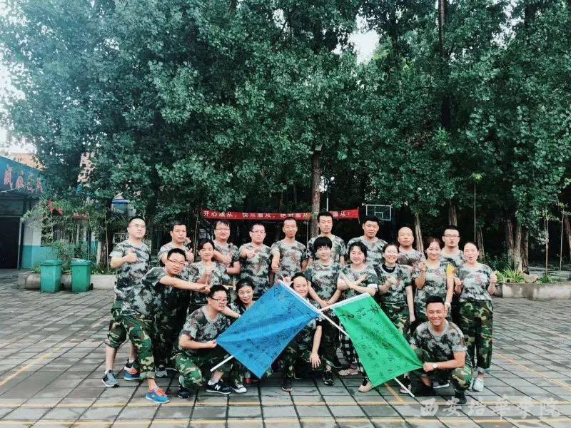 与往届在校内进行素质拓展活动不同,本次拓展辅导员们来到了专业的素质拓展基地开展活动。在破冰环节,辅导员们在教练的引导下,很快分成了金钢队、幸福队、先锋队三个小队,每个小队都集思广益,起队名、定队歌、想口号、摆造型……准备直面接下来的挑战。