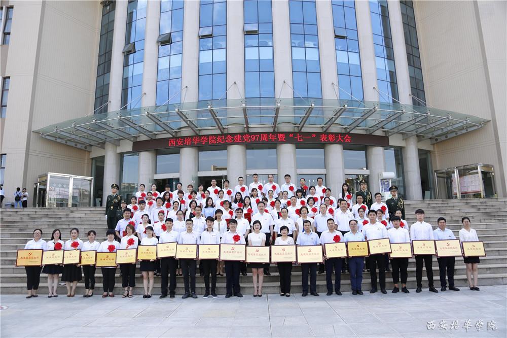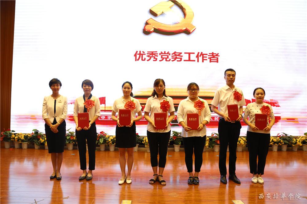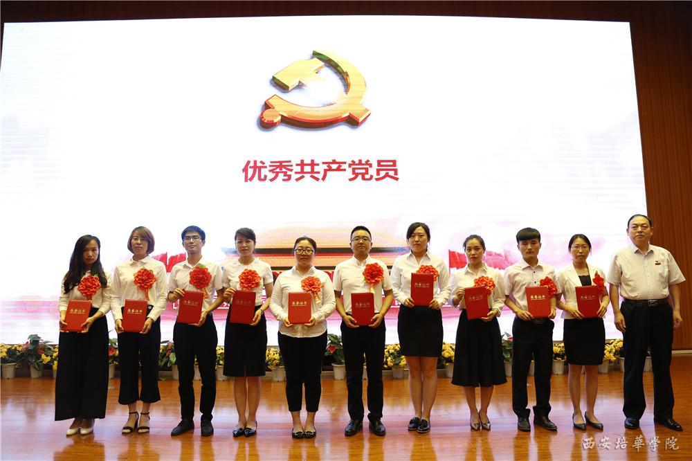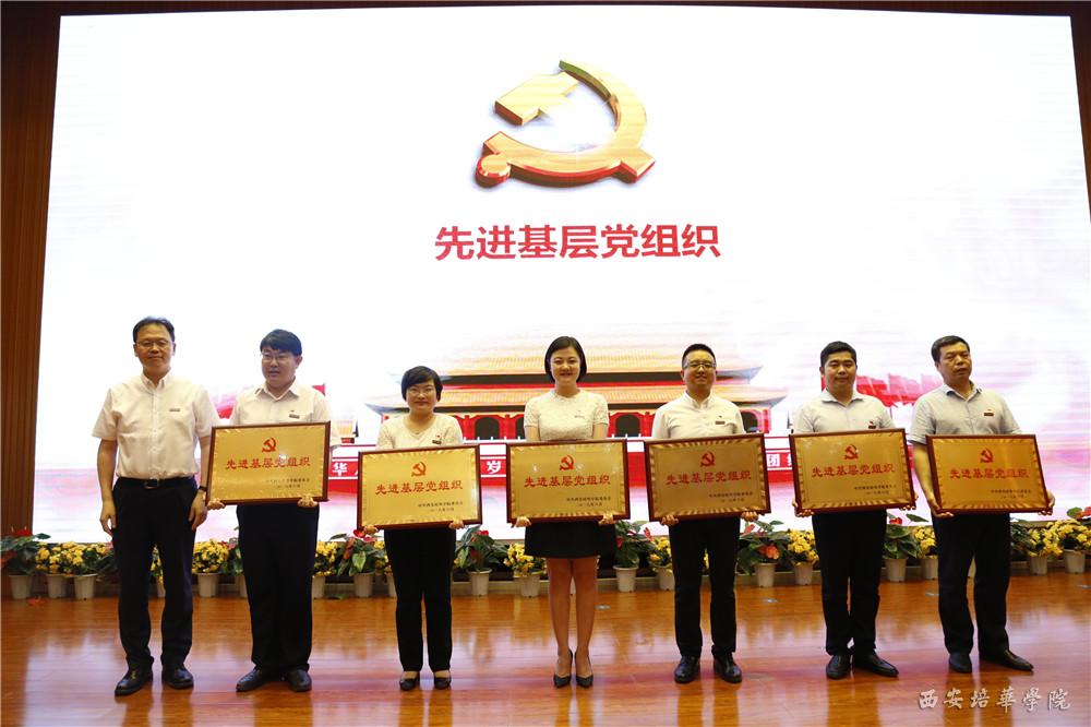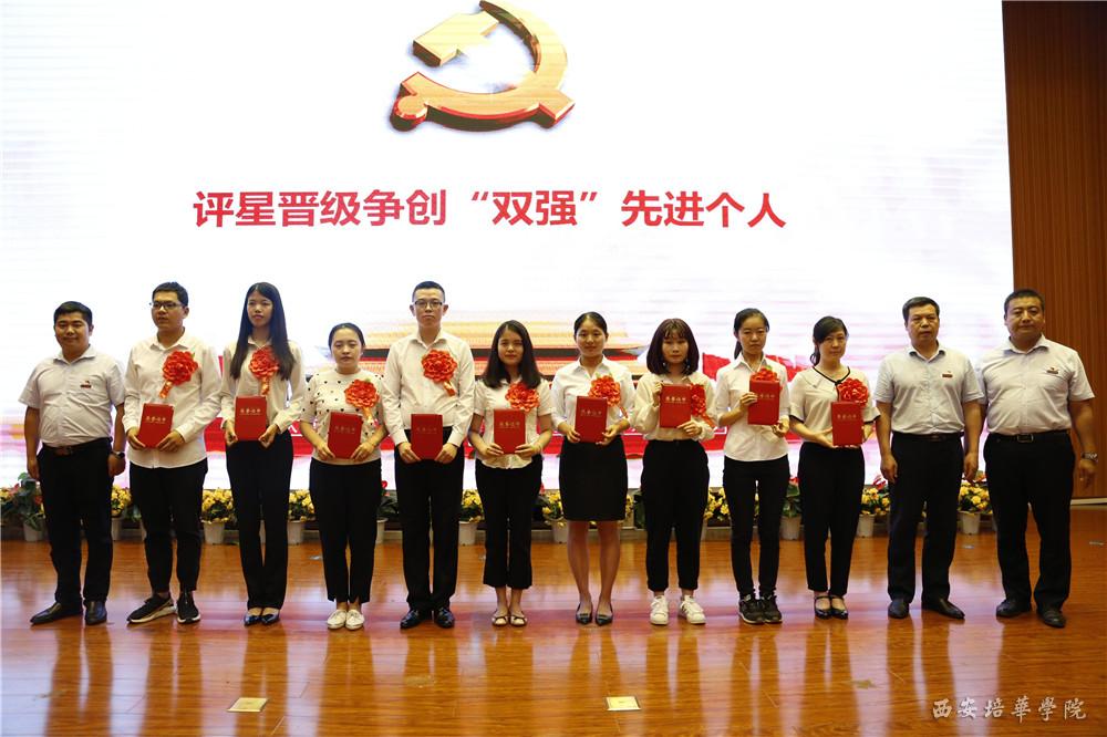 会上,校长李映方同志宣读了《关于命名表彰全省五星级非公有制经济组织和社会组织党组织的决定》、《中共陕西省委高教工委关于表彰全省高校先进基层党组织、优秀共产党员和优秀党务工作者的决定》、《中共西安培华学院委员会关于表彰优秀共产党员、优秀党务工作者、先进基层党组织和先进党支部的通报》等文件,文件中提到中共西安培华学院委员会被授予“五星级党组织”荣誉称号;西安培华学院党委被授予“先进校级党委”荣誉称号,西安培华学院国际教育学院党总支被授予“先进基层党组织”荣誉称号,西安培华学院姚斌、赵洁被授予“优秀共产党员”荣誉称号,李丹霞被授予“优秀党务工作者”荣誉称号;西安培华学院崔菲等35名同志被授予“优秀共产党员”称号,王惠冉同志等6名被授予“优秀党务工作者”称号,传媒学院党总支部等6个党支部被授予“先进基层党组织”称号,艺术设计学院学生第二党支部等15个党支部被授予“先进党支部”称号。党委工作部部长陈玲同志宣读了《中共西安培华学院委员会关于表彰评星晋级争创“双强”先进个人的通报》,文件中提到经各基层党组织民主推荐,校党委研究,决定对刘艳娇等30名先进个人予以通报表彰。