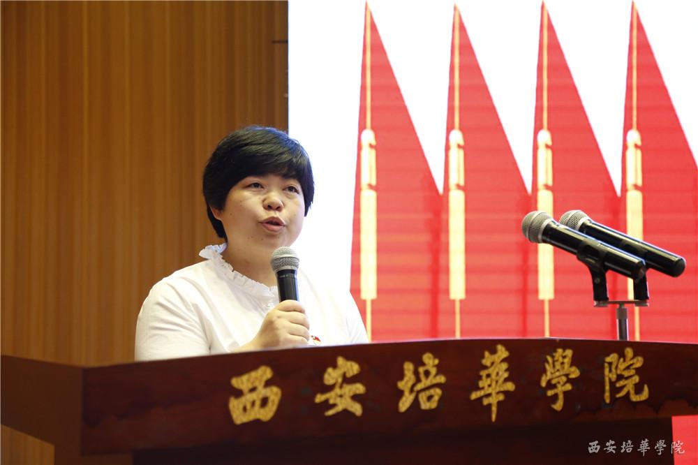 原国际教育学院党总支书记梁蕊作为先进基层党组织代表发言