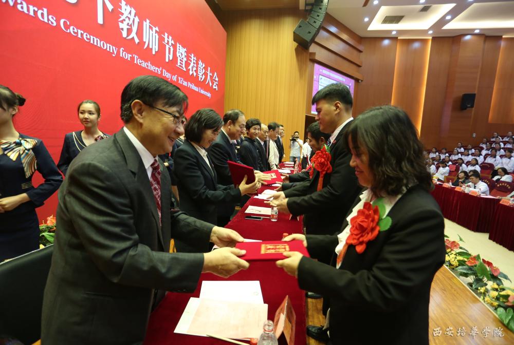颁奖结束后,分别由获奖个人和学生代表发表感言,教师代表王菊宁讲到,作为教师,我们明白我们所从事的职业是一个需要用爱与责任支撑的职业;我们会把自己的爱与责任和知识完美的融合,用自己的热情去完成育人的目标!教育是爱的共鸣,是心和心的呼应。教师只有钟爱学生,才能教育好学生,才能使教育发挥最大限度的作用。招生与就业指导中心主任鲍伟讲到,今天,这份荣誉,既是对我们的肯定,更是对我们的鞭策,百年培华,责任在肩,任重道远,我们不敢有半点懈怠。明天,我们将携手并肩,不忘初心,继续前行。学生代表单帅伟发言,她回忆了大学两年与学业导师、生活生涯导师之间的感动故事。她说,老师们的唠叨、严厉、不近人情都是因为爱。她会从自己日常学习生活的点点滴滴做起,始终保持坚定不移的理想信念和认真努力的学习态度,坚守朴实,追求崇高。今后,无论身处何方,人在何地,都会一直关注母校、牵挂恩师。