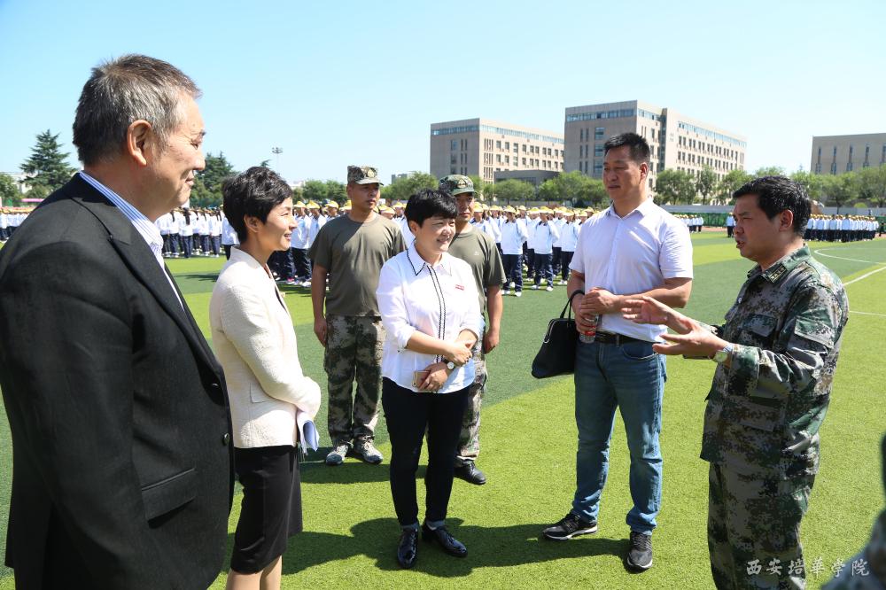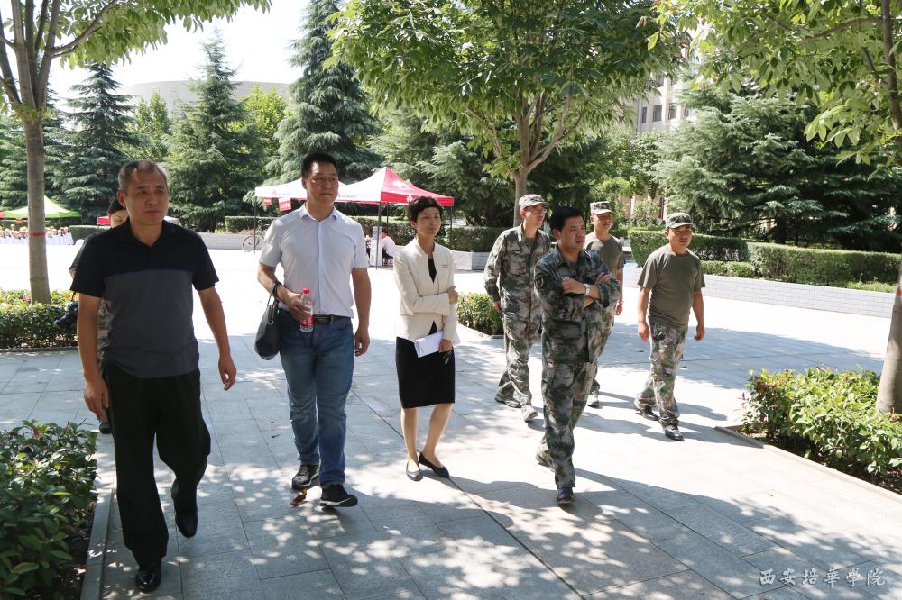 陕西省预备役高炮师四团参谋长曹海滨中校,西安培华学院军训团副团长王刚,西安培华学院学生服务中心副主任徐莹等陪同视察。