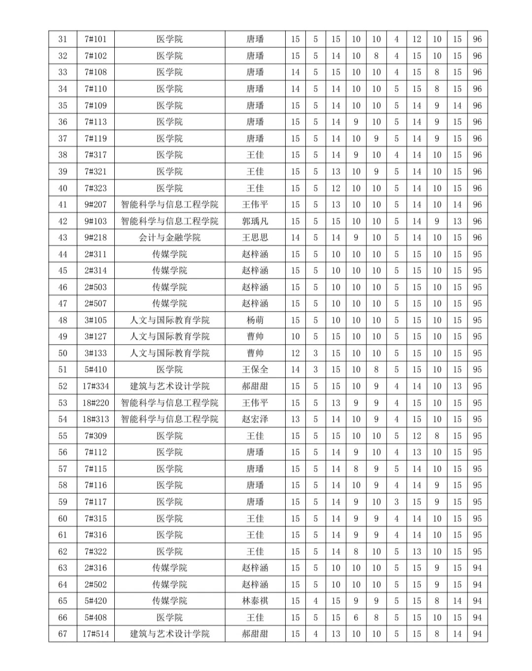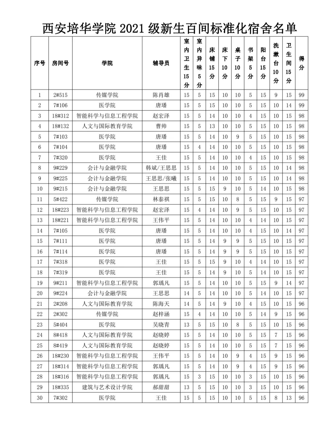 2021级新生百间标准化宿舍名单