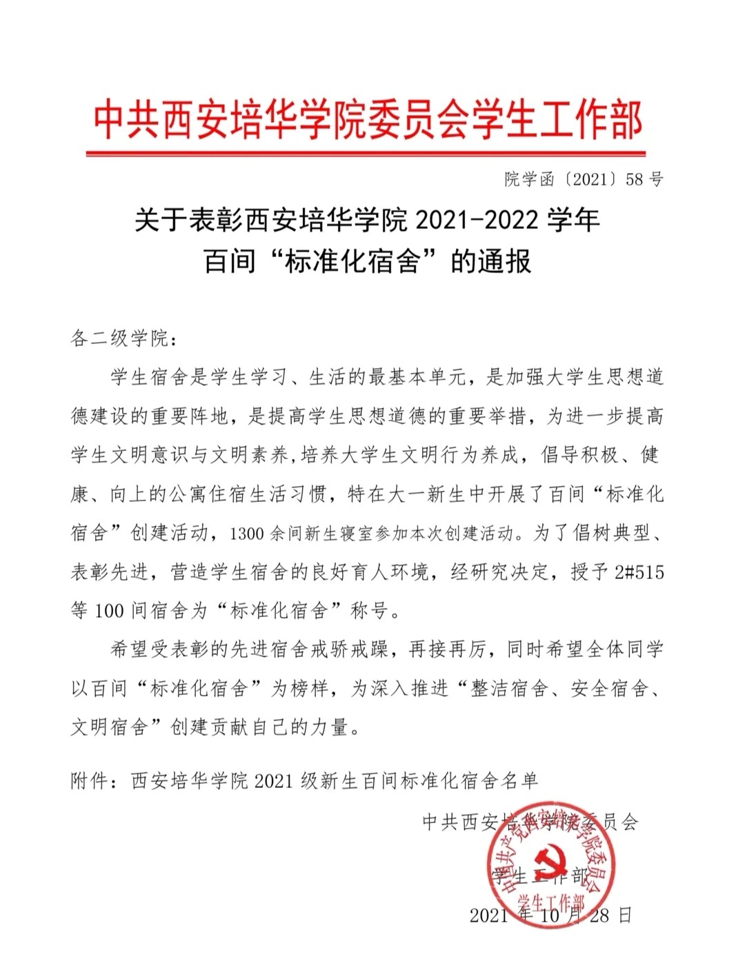此次共授予100间宿舍“标准化宿舍称号”