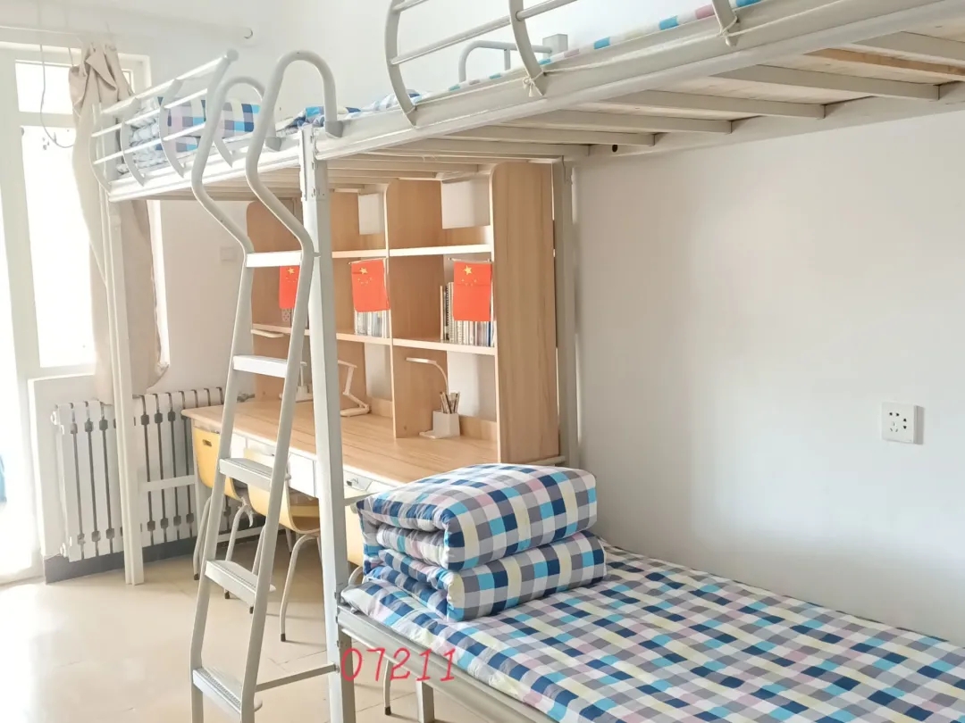 6、椅子:人离开宿舍时,椅子必须放置于桌子下面,椅背紧贴桌沿。